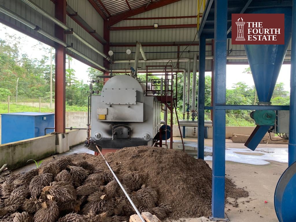 Inside the Fiase Oil Palm Processing Factory, a common user facility in Tarkwa in the Western Region, four electricians were busily pulling wires around an equipment.