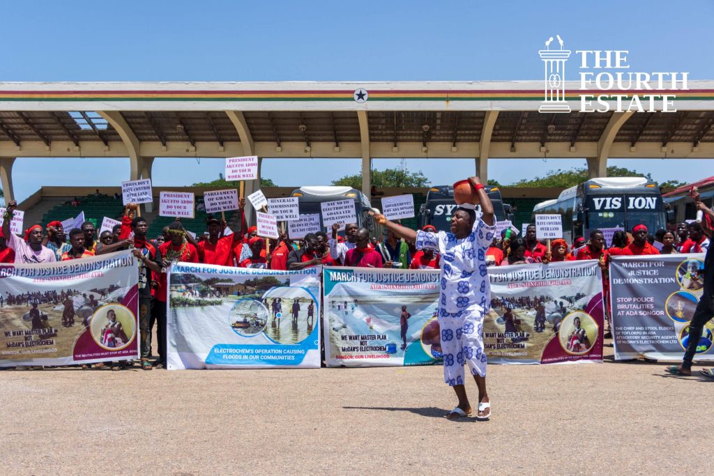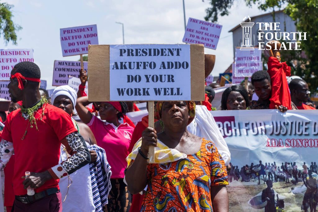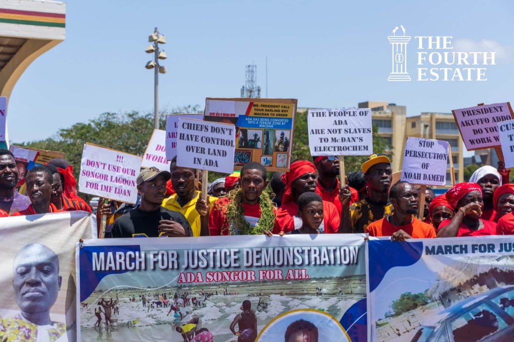Dubbed the “March for Justice Demonstration”, the protesters urged authorities to investigate the “gross violation” of human rights by the military and police during their raids on the Ada communities. Additionally, they demanded accountability on the activities of Electrochem Ghana Limited, the company mining salt at the Songhor Lagoon. They accused the company of using land guards to intimidate residents of the community who had depended on salt mining for decades.