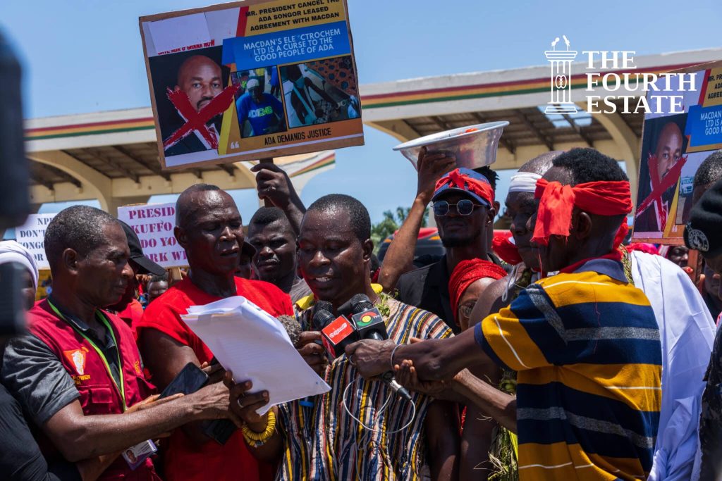 Hundreds of residents of Ada took to the streets of Accra on Thursday to protest the lease of the entire 41,000 acres of the Songhor Lagoon to Electrochem Ghana Limited (ELG), owned by Daniel Mckorley.