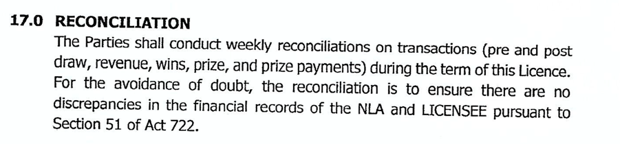 6. What the KGL Consultant and PR Agent, Razak Kojo Opoku, did not tell the public is that the NLA request is based on Paragraph 17 of the license granted KGL under the terrible, state-fleecing NLA-KGL deal. He should have told the public that, that aspect of the license agreement mandates KGL and NLA to do weekly reconciliations. Not yearly reconciliations.