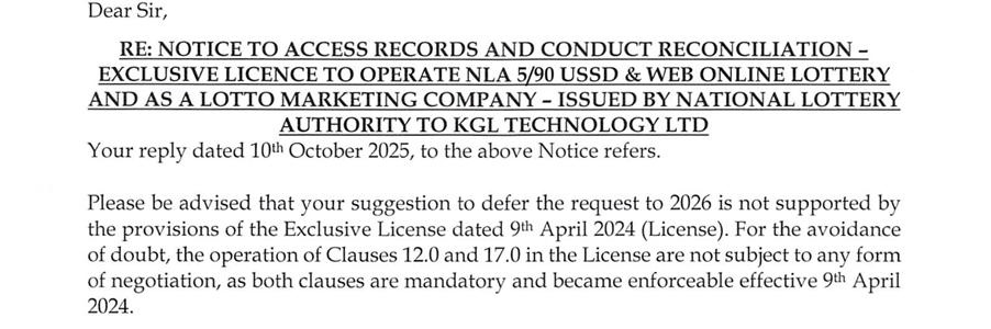 4. What the KGL Consultant and PR agent, Razak Kojo Opoku, conveniently refused to disclose to the public is that, when KGL requested that NLA defers the request to 2026, NLA refused and wrote back to KGL that it must produce the requested data by October 17.