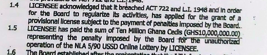 8. When we said KGL started operating NLA’s 5/90 USSD online lottery illegally and was fined GHC10 million by NLA, the KGL Consultant and his allies said we lied. They claimed that the company that operated illegally and was fined was called a certain KEED and not KGL. We produced the evidence below from the 2019 NLA-KGL license agreement. Then they went silent, thinking of the next lie to feed the public with.