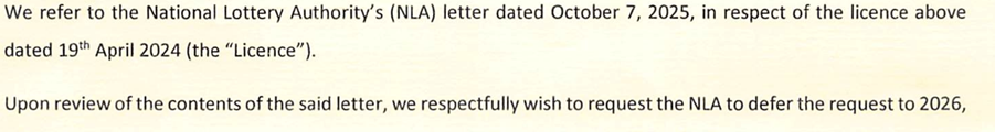 See below the evidence from the NLA letter refusing to defer the request to 2026, as obtained from our sources within KGL.