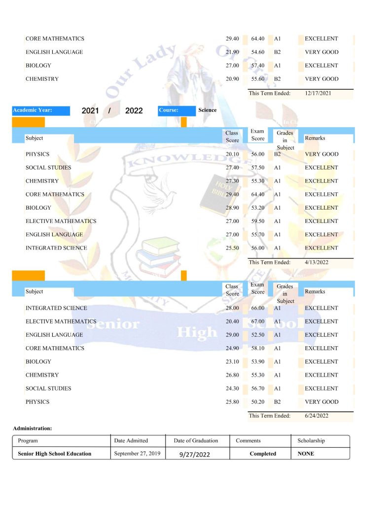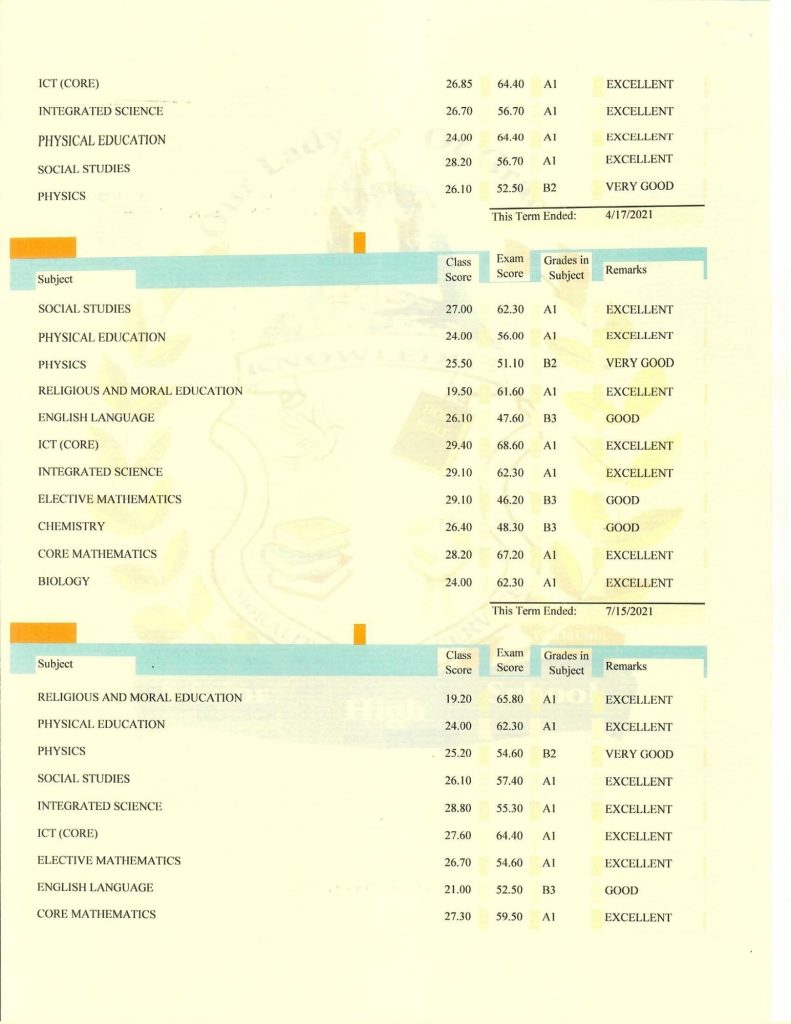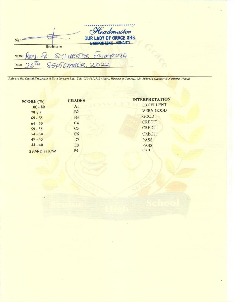 Of the three, only the one signed by the headmaster, Rev. Fr. Sylvester Frimpong, is the official one they subsequently received from the school.