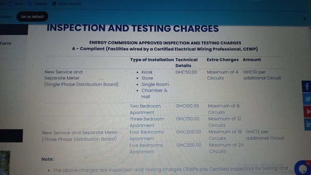 The problem begins even earlier – before a meter is installed. Customers must pass an Energy Commission inspection certifying safe wiring. Official fees range from GHC 50 to GHC 250, depending on house size.